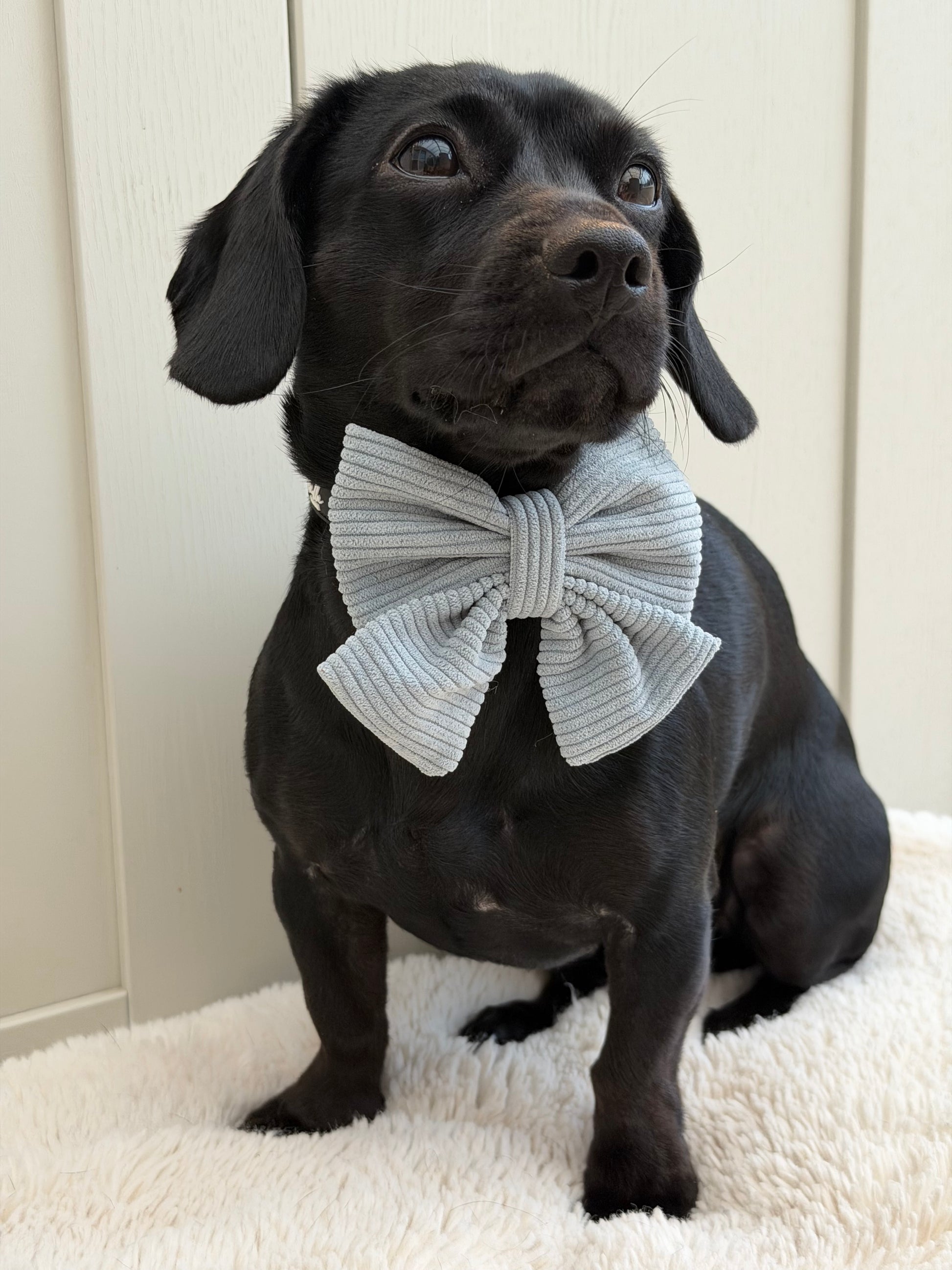 Our new Serene Shores Sailor Bow is the most gorgeous soft grey-blue tone, which pairs beautifully with any coat colour and complements our signature aesthetic.