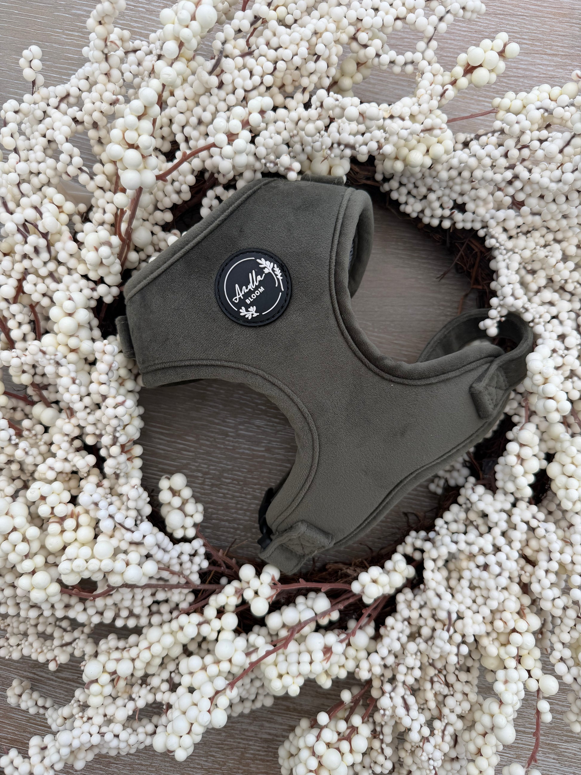 Moorland Muse Moss Green Velvet Adjustable Harness, Lead & Collar Bundle